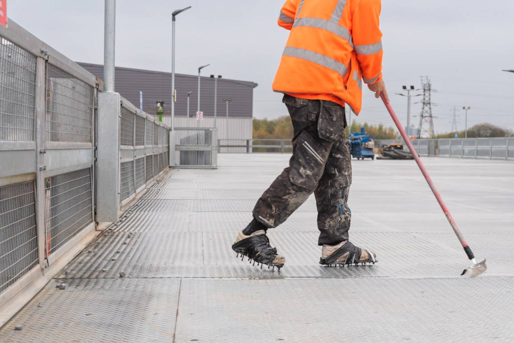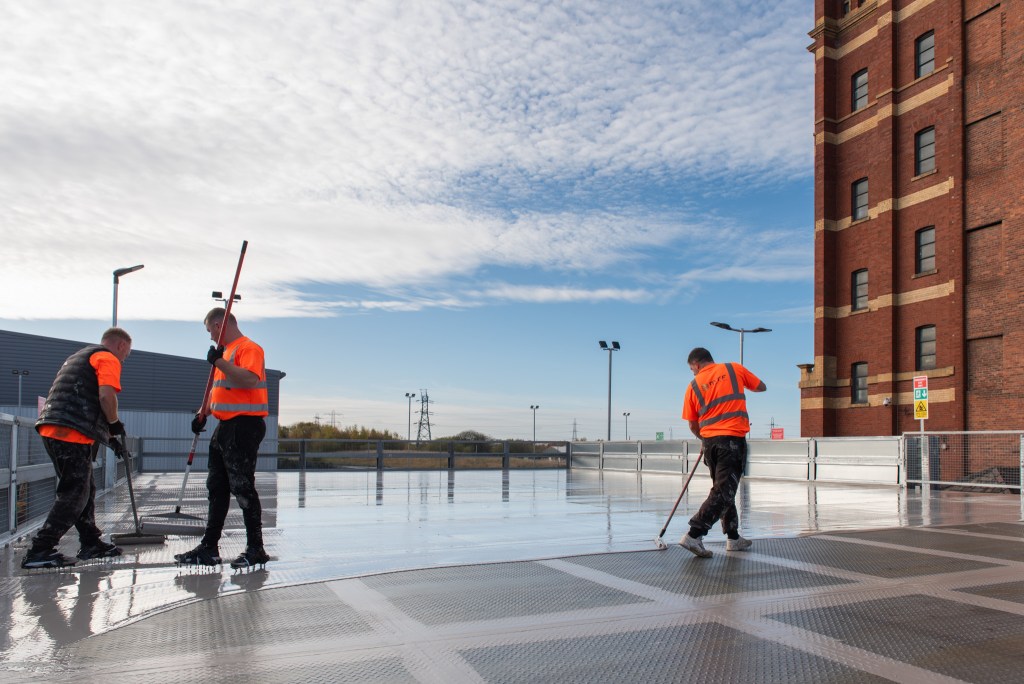 At Ram Mill, however, progress was challenged by the arrival of early winter weather. Cold sub-zero temperatures and frequent rainfall in late autumn presented obstacles to both construction and specialist surfacing works, particularly for the top-deck areas that are directly exposed to the elements. Despite these hurdles, the project was delivered successfully and to a high standard, thanks to the determination and skill of the teams involved.