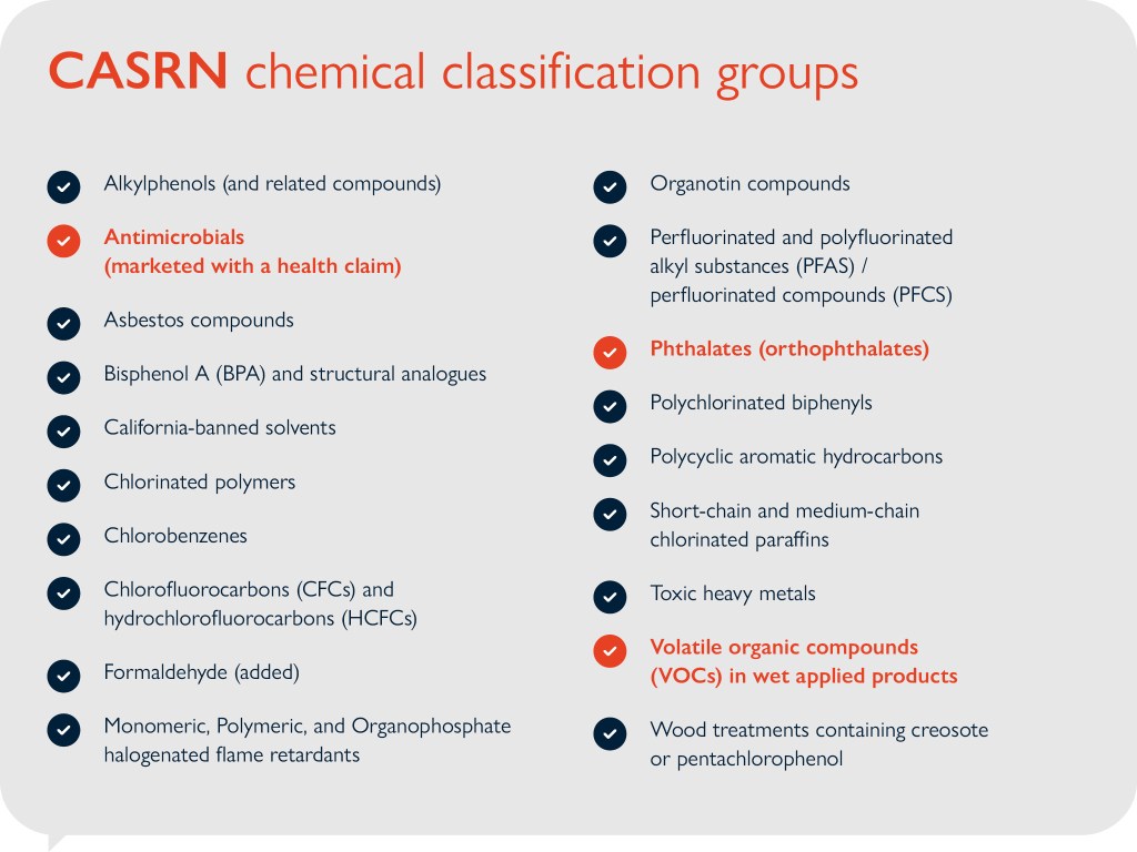 The Red List is updated yearly with chemicals that have well-established research pointing to their toxicity. It considers the evolution of voluntary restricted substances lists, global regulations and innovation of the building products manufacturing industry.